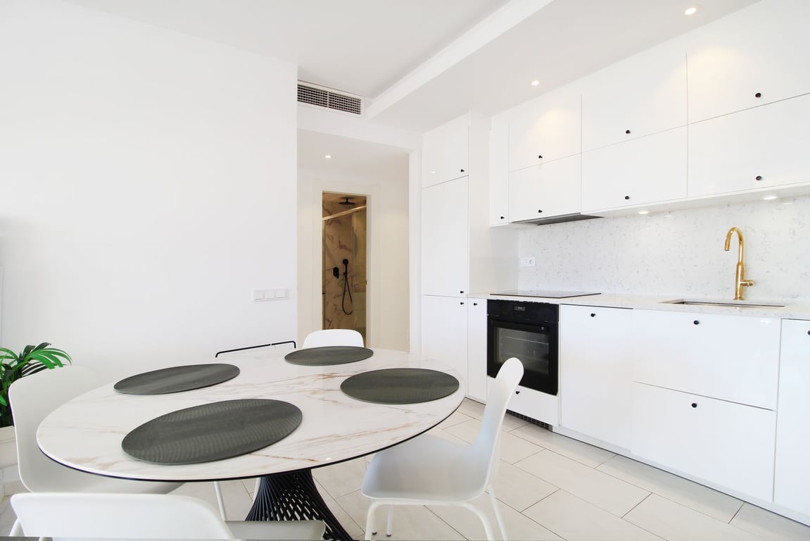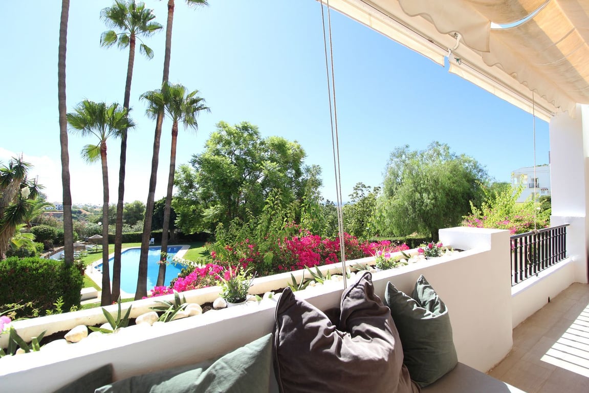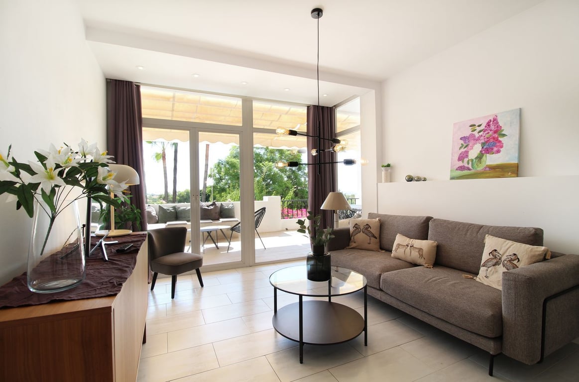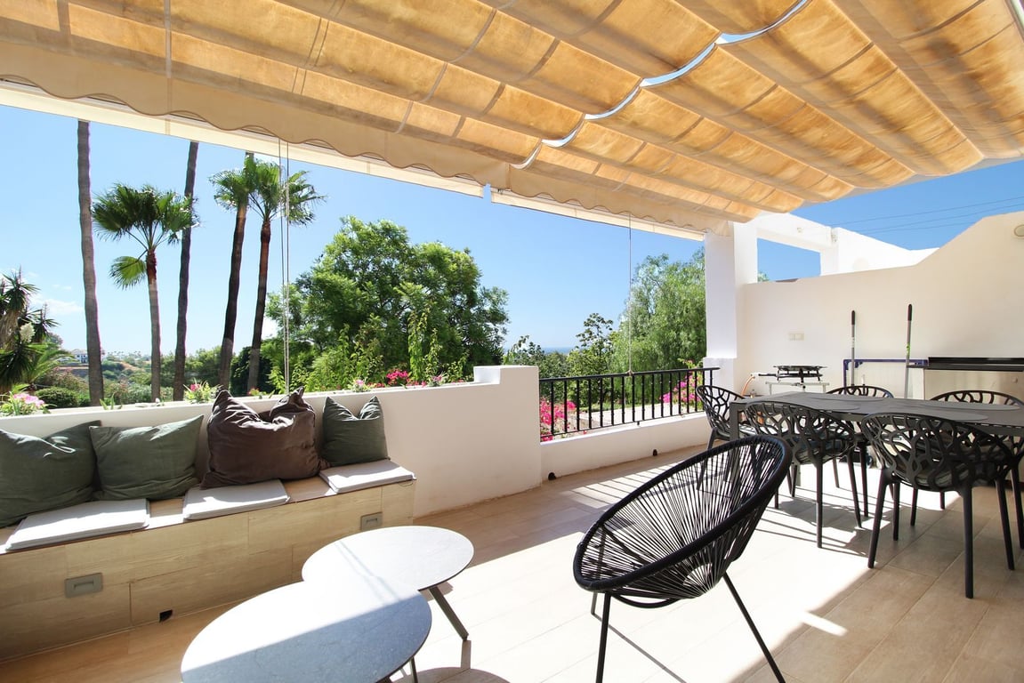 Located in the highly sought-after area of La Quinta, just 100 meters from the prestigious 5-Star Westin Golf & Spa Hotel with its various restaurants and facilities, this beautifully refurbished first-floor, front-line golf apartment offers an enviable lifestyle. Enjoy lovely, open views over the lush communal gardens and pool, with the stunning Mediterranean Sea as your backdrop. The spacious terrace is a sun-lover's dream, providing all-day sunshine. Pergolas can be conveniently closed to cre...