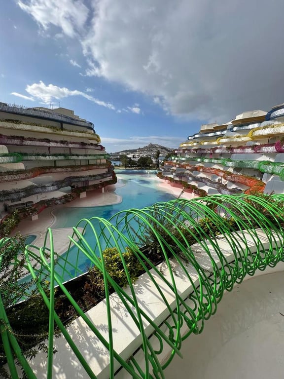 Stunning luxury flat for sale in the prestigious building of Las Boas, in Ibiza.The flat is located on the 4th floor, has 80 m2 and 20 m2 of terrace.The property has 2 bedrooms, 2 bathrooms and a terrace with magnificent views to the port and Dalt Vila.The property has parking, communal swimming pool and is located in the luxury building Las Boas, built by the famous French architect Jean Nouvel.The building is located in the area of Botafoc, an ideal place for your residence or second home on t...