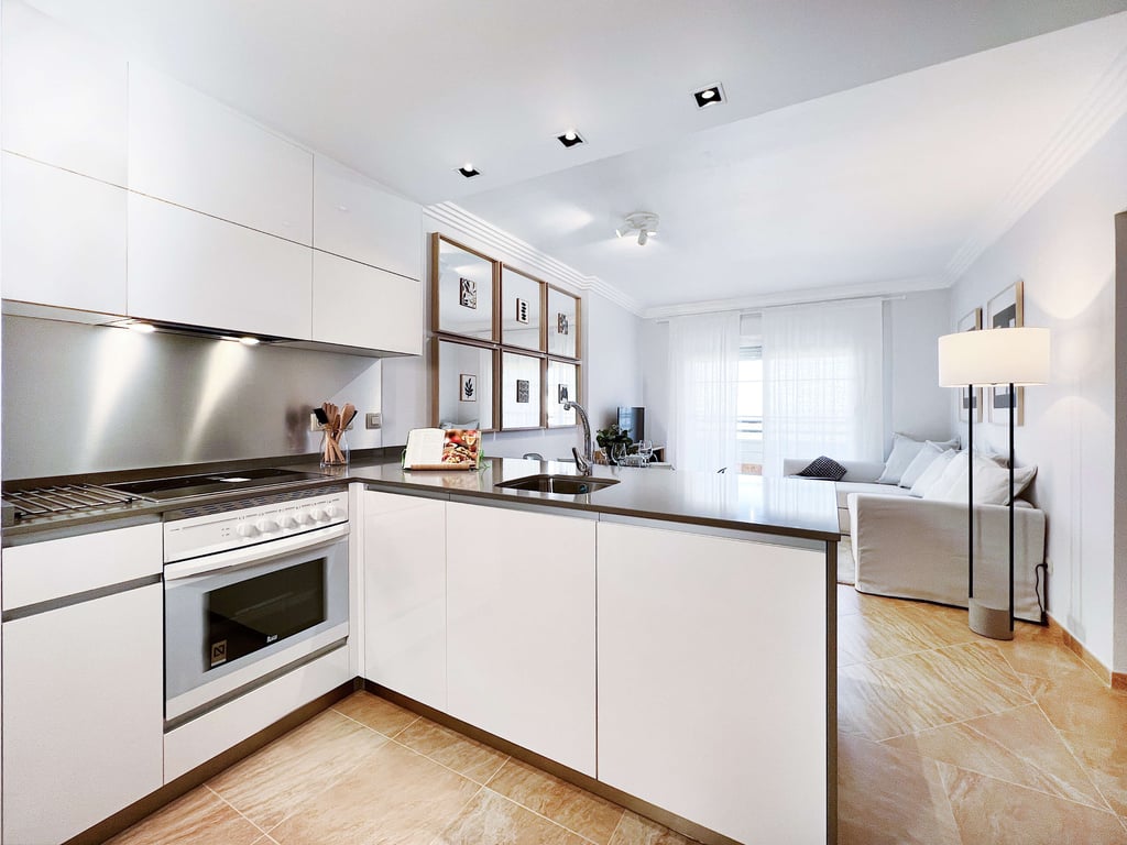 2 bedroom apartment located in the beautiful Golf Course of Isla Canela, Spain!Property, located on a high ground floor, consisting of 2 bedrooms, 1 of these en suite, in total 2 bathrooms, living room in open plan with an equipped kitchen and a large private terrace with a breathtaking view over the neighboring land of Vila Real de Santo António and a natural park (where construction is prohibited, and the view will never be obstructed by new construction). The terrace has the possibility of e...