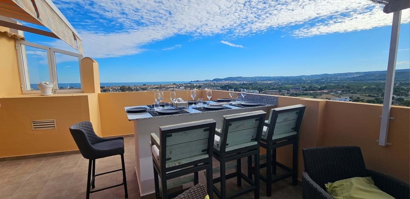 WHITE JAVEA REAL ESTATE presents this duplex penthouse for sale in the heart of Javea with panoramic sea and mountain views Modern 3 bedroom, 3 bathroom duplex penthouse located in the heart of Javea. Perfectly positioned within walking distance of the lively restaurant scene and all essential amenities, this stylish, move-in ready property offers the best of coastal living with unrivalled convenience. The penthouse boasts two terraces, offering breathtaking views of the Mediterranean Sea...