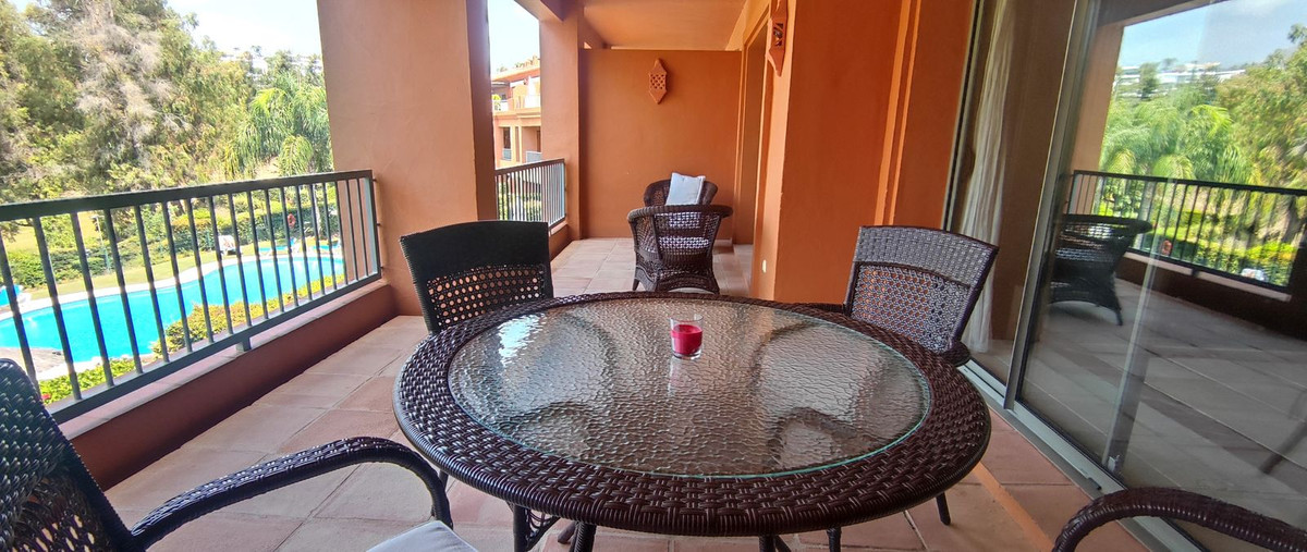 Appartement in the spectacular Benatalaya urbanization, consisting of 20.000m2 of gardens, divided into small blocks of Mediterranean architecture, with several swimming pools, spa, gymnasium and 24 hour security. This flat overlooks the prestigious Atalaya golf course. Carefully maintained, the property has two bedrooms and two bathrooms, one of them ensuite, kitchen with utility room and a large terrace of 28m2. There is also a private garage space and storage room. The location of this urbani...