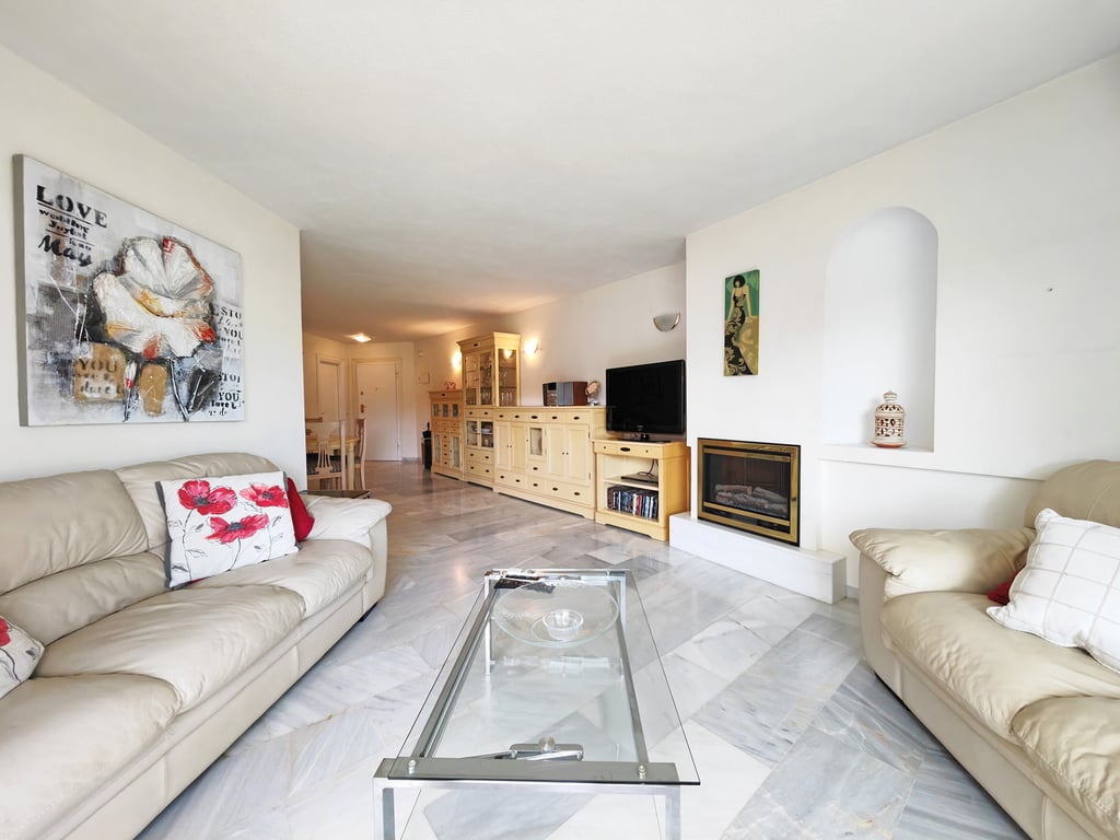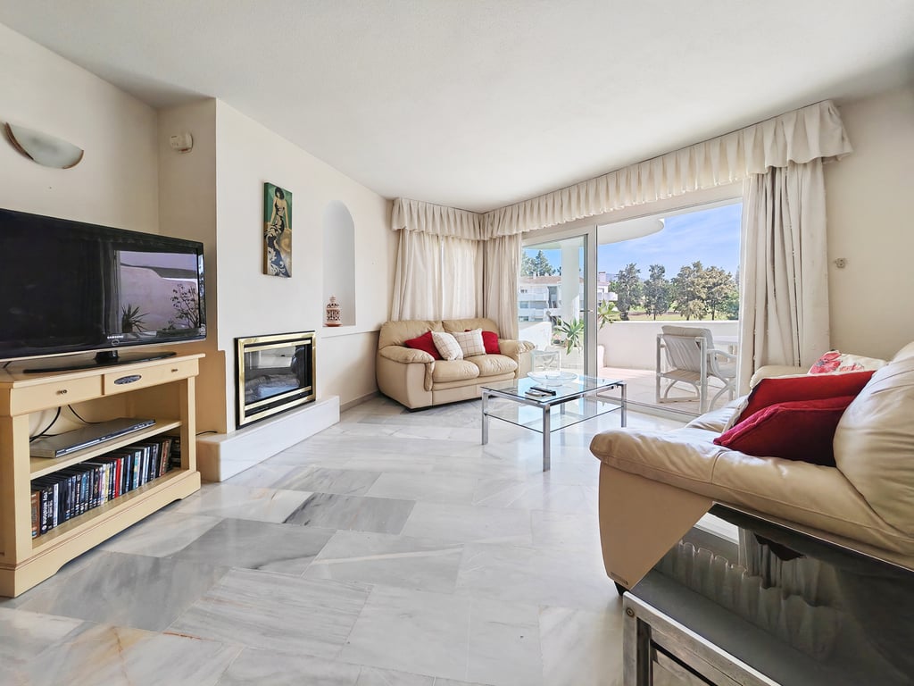Fantastic opportunity to own this spacious apartment for sale in Mijas Golf situated on an immaculately kept residential complex overlooking the golf course and enjoying views of the spectacular swimming pool and gardens. Upon entering this apartment you are greeted by bright and inviting interiors, with a spacious lounge and dining area opening out to an equally generous terrace offering the perfect spot for al fresco dining and where you can enjoy your morning coffee while taking in the perfe...