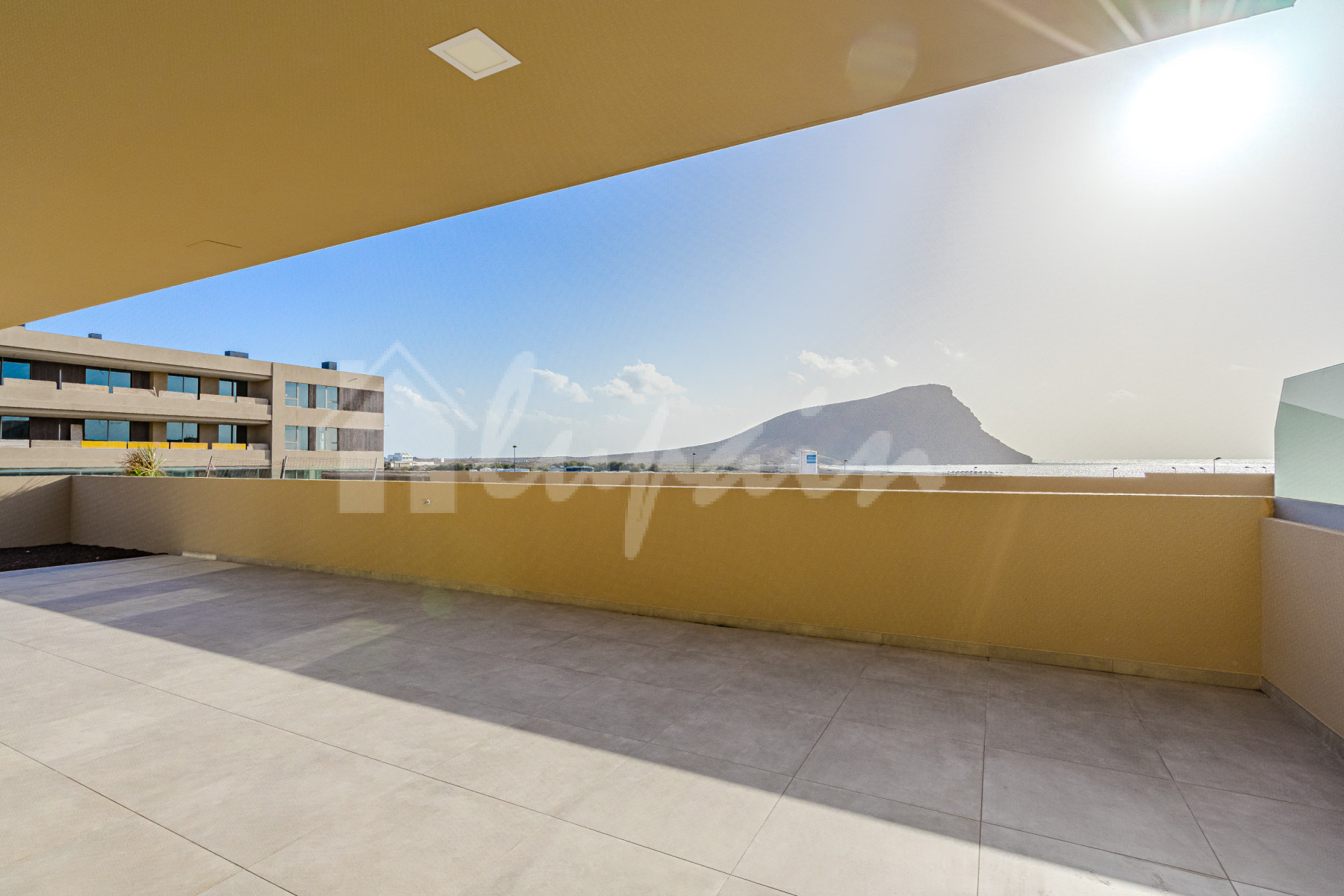This newly completed, unfurnished apartment is located in the prestigious Sotavento Suites development in La Tejita. The property offers a total interior living space of 93 m2 and boasts an impressive 115 m2 private terrace. It comprises three bedrooms with built-in wardrobes and two modern bathrooms. The open-plan American-style kitchen flows seamlessly into the bright lounge and dining area, with large patio doors opening onto the expansive terrace. From here, you can enjoy beautiful pool and ...