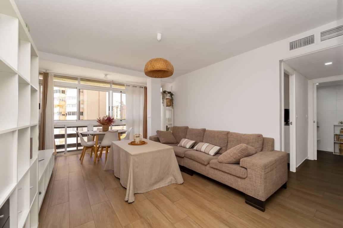 Beachfront apartment in Muchavista, located in the renowned Las Lanzas urbanization, one of the most complete and sought-after in the area.This first-floor apartment with elevator access has been completely renovated and is ready to move into. It features three bedrooms and one bathroom, with a functional and well-designed layout. The open-plan kitchen is integrated into the living room, creating a more spacious and bright environment.It stands out for its south-facing orientation and direct sea...