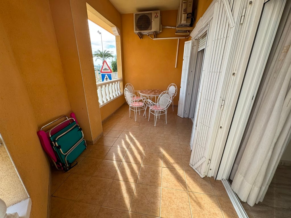 A ground floor property which has been very well looked after in the pretty village of Algorfa, the property has great access to the town with its many bars, shops and restaurants and easy access to la Finca golf course. The property has 2 bedrooms a nice size lounge with a balcony that looks onto the beautiful sports area of Algorfa and has a private solarium with amazing views.