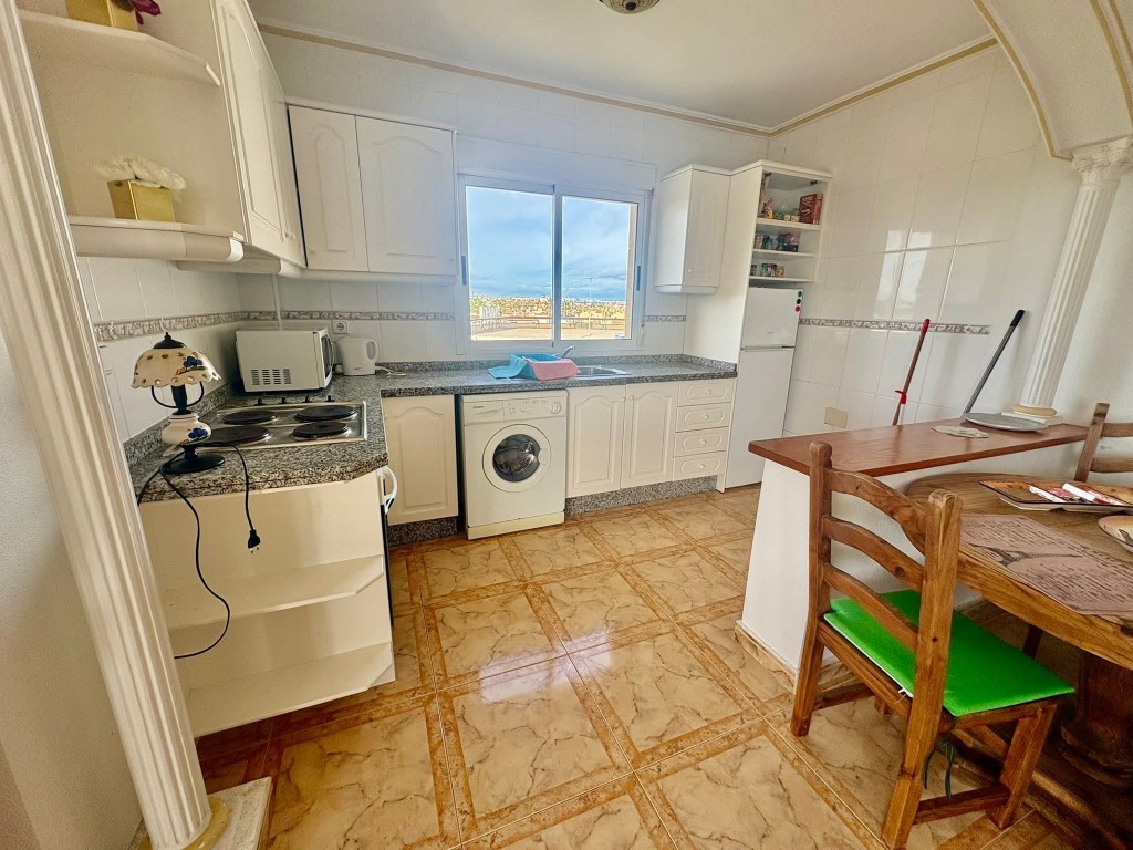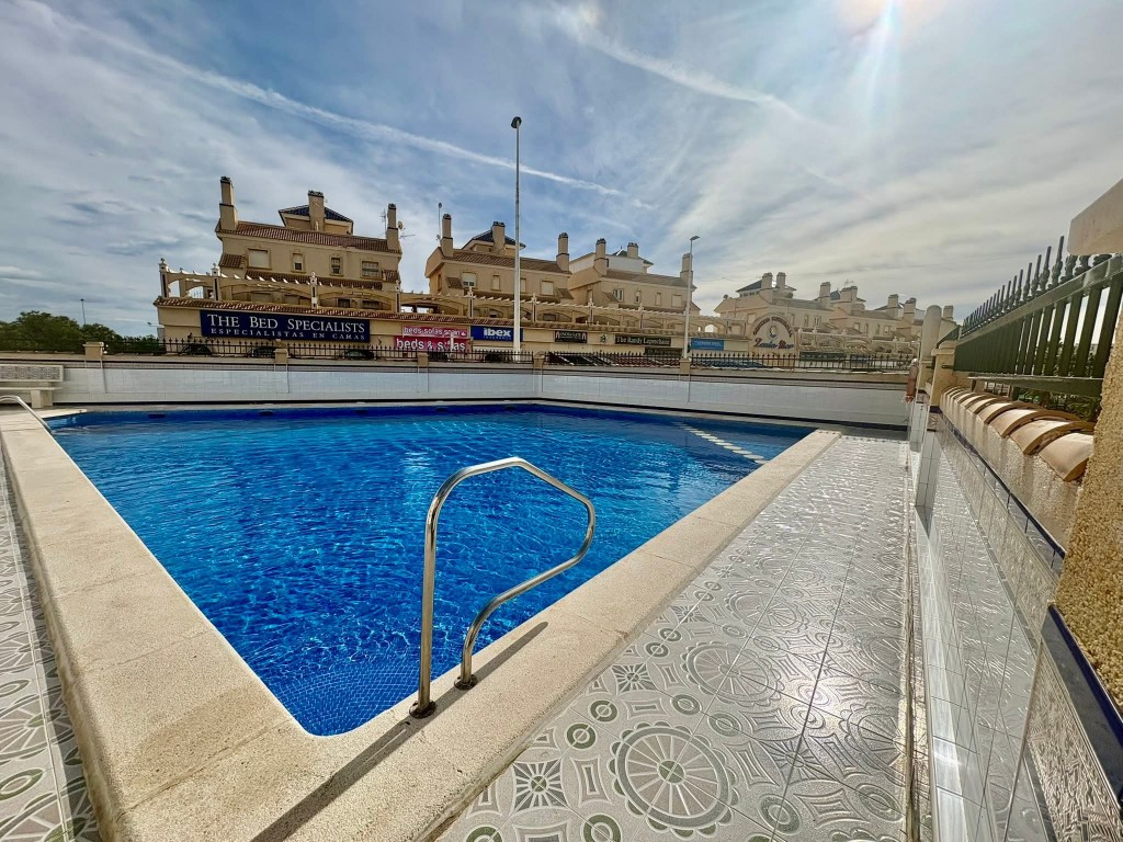 OFFER! Sunny Apartment in Heart of La Zenia. 2 bedrooms 1 bathroom Communal Pool Terrace Off road parking Gated Complex Lift 3rd floor We present to you an exclusive fully furnished 2 bedroom, 1 bathroom apartment with a sun terrace offering scenic views, off road parking and access to a community pool, situated in a gated complex in the highly sought after area of La Zenia, Orihuela Costa. This third floor property (with lift) is south west facing and offers a bright living room, an open plan ...