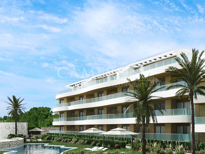 Beautiful terrace apartments with 2 or 3 bedrooms and 2 bathrooms at a fantastic location at 400 meters from Playa Flamenca beach in Orihuela Costa. They all have a living with modern open kitchen and sliding windows connecting to the large front terrace. The penthouse are luxurious and have a big solarium.The tropical complex has three beautiful pools with one of them with heated water, beautiful green areas with tropical plants, a bowling, a fitness, a lounge and separate relaxation zones.The ...