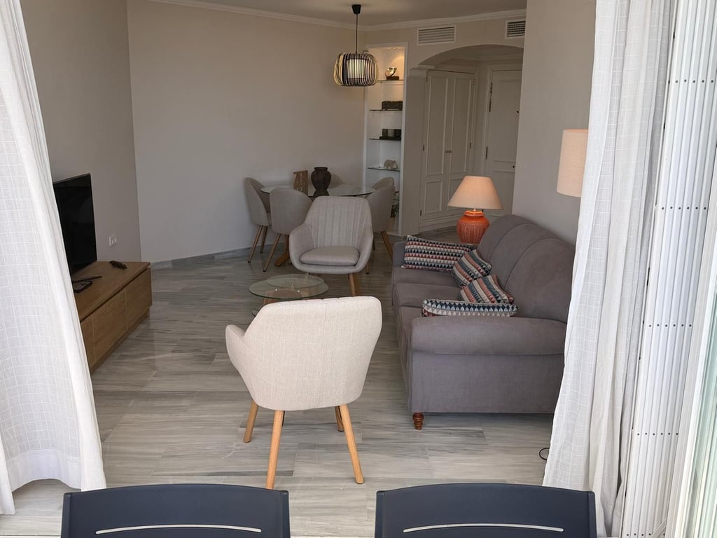 Sea views · 3 bedrooms · Just a short walk from Alicate Beach Fantastic and bright second-floor apartment, fully exterior, located just a few steps from Alicate Beach, one of the best beaches in Marbella East. The property is set within a beautiful Mediterranean-style urbanization, surrounded by tropical gardens and colorful bougainvillea. The community offers two swimming pools and security service, providing a peaceful environment to enjoy the authentic Marbella lifestyle. The apartment featur...