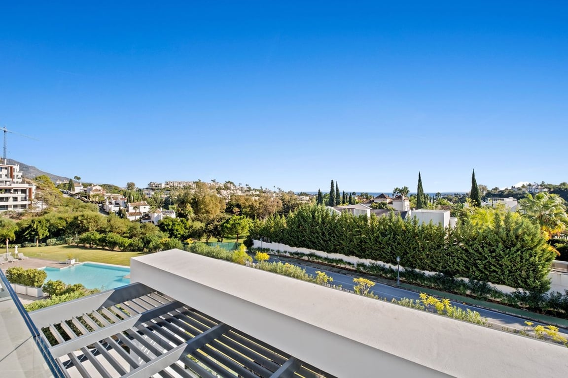 This well presented two-bedroom, two-bathroom apartment is located in the sought-after Aqualina development, in the heart of Marbella's Golf Valley. The property offers 112 m2 of interior living space and a generous 43 m2 private terrace with open sea views, making it ideal for both everyday living and holidays. The bright and spacious living and dining area benefits from an additional side window a feature found in only a limited number of apartments within the community allowing for abundant ...