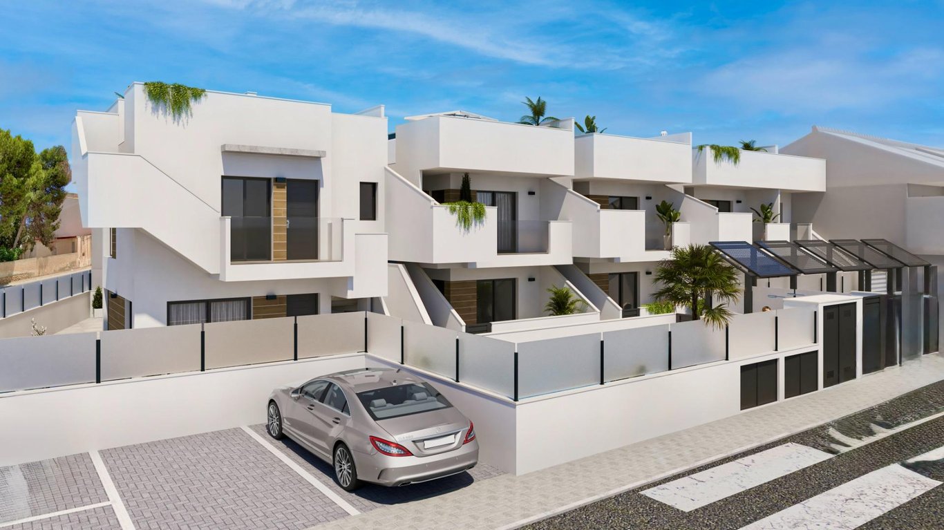 Nice ground floor apartment with 3 bedrooms, 2 bathrooms, communal pool, 18 m2 terrace and 10 m2 patio. Only approx 5 - 8 min walk from the town centre of San Pedro del Pinatar and 5 min drive from the beaches. All apartments have off road parking.~~It consist of a 30 m2 lounge with open kitchen. Nice kitchen island and all appliances are included. Front the lounge is access via glass doors to the terrace. From the lounge is also access to the bedroom section with the 3 bedrooms and the 2 bathro...