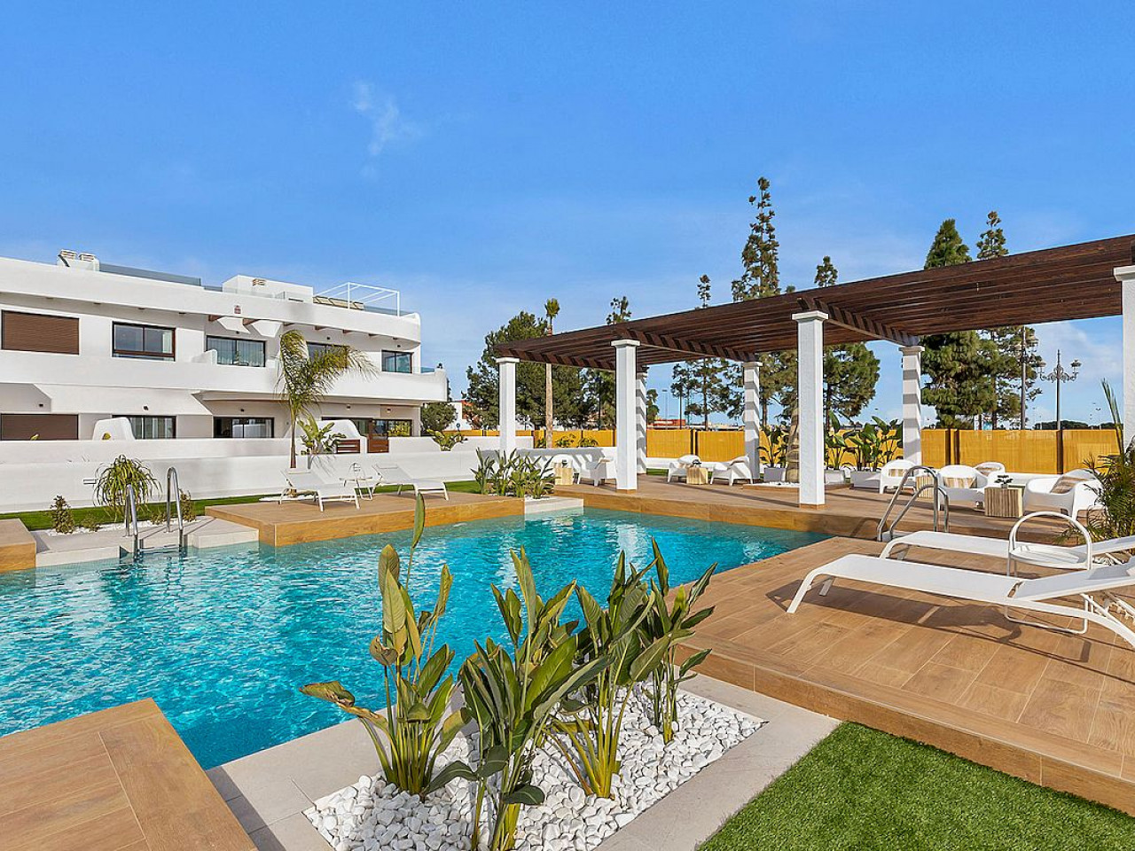 LA Sunrise is a new complex on the shore of the Mar Menor inland sea in La Serena Golf in Los Alcázares. The residential is composed of 30 apartments of 2 and 3 bedrooms combining modern design, quality and functionality. The unbeatable location offers nice views to golf and the Mar Menor Sea. There are 3 different buildings, two of them boasting ground and top floor apartments and a third one with three floors and a lift. Ground floor apartments have a private garden, and penthouses have ...