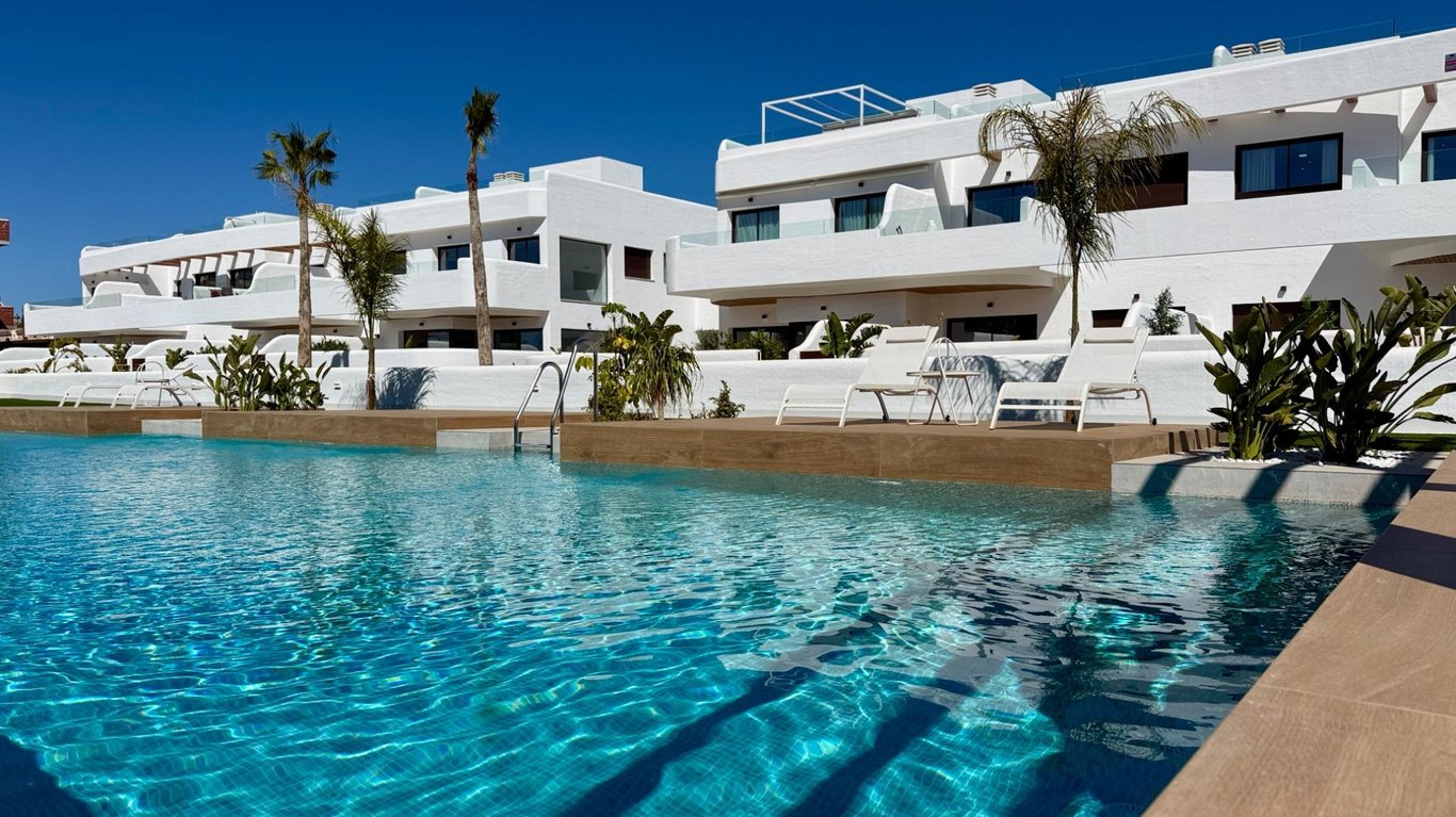 First floor apartment with nice views. ~~3 bed, 2 bath.~~This fantastic apartment is in the Serena Golf area of Los Alcazares. Approx 20-25 minutes walk to beaches, "old" town and the marina.~~Golf only 10-15 min walk away ~~Apartment consist of lounge with open kitchen and access to the terrace via large sliding glass doors.~~The kitchen comes with hob and extractor.~~3 bedrooms with build-in wardrobes. The largest one also got en-suite bathroom.~~Key features:~~- Walking distance to Beach, to...