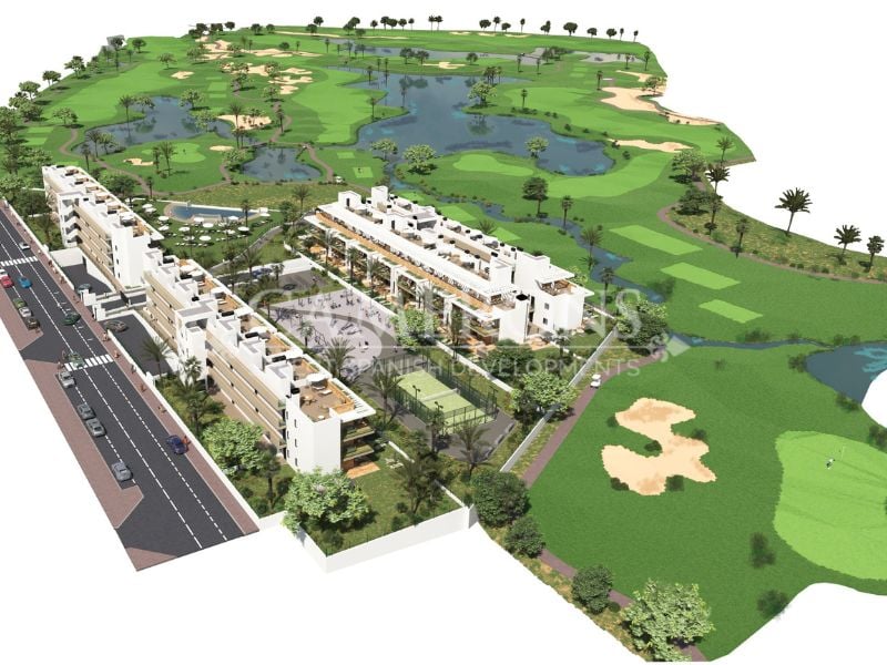 New project in La Serena Golf, in Los Alcazares.Ground floors with large terrace and gardens, and penthouses with solarium with golf and sea views. With both 2 and 3 bedrooms properties to choose from.Overlooking the golf course and complete with communal pool, as well as underground parking and storage included.La Serena Golf in Los Alcazares Murcia has an ideal location only 1km to the beach of the Mar Menor (Costa Cálida) and close to the cities of Cartagena and Murcia.The resort comes compl...