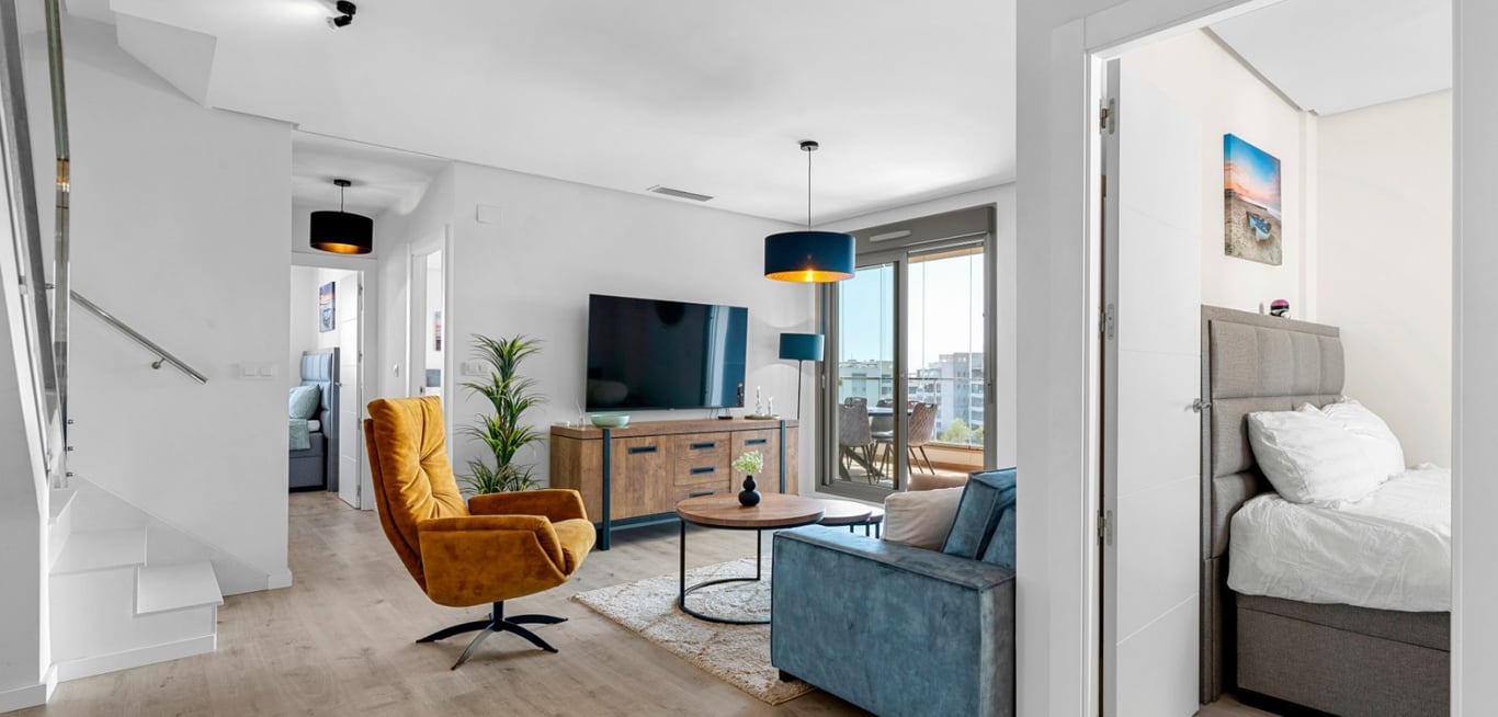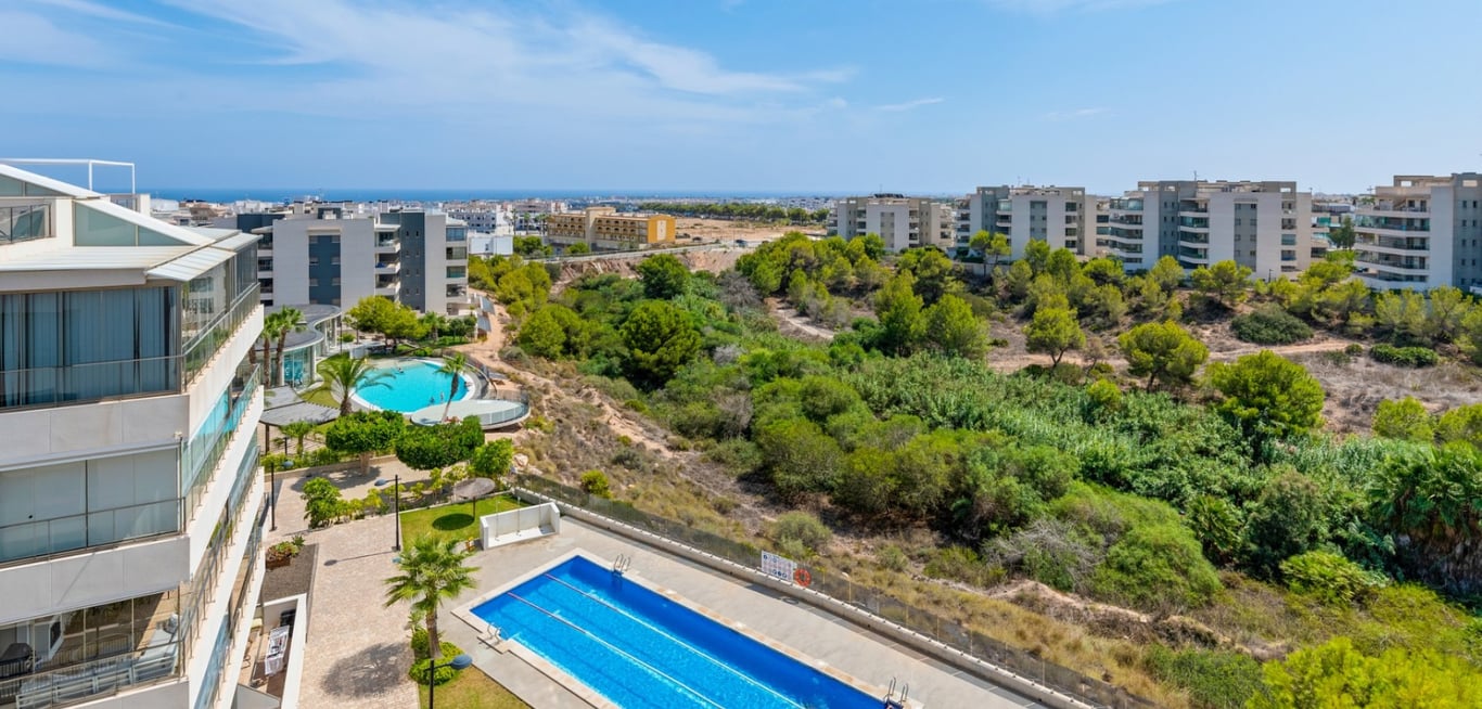 Beautiful penthouse apartment with 3 bedrooms - Roof terrace with fantastic views - Parking! We are proud to present this apartment in the sought after "Green Hills", located just above La Zenia. Here we have perhaps the most beautiful apartment in the complex, a south-west facing penthouse apartment with 3 bedrooms, 2 delicate bathrooms with underfloor heating, a large glazed terrace outside the living room, as well as a private roof terrace with a pergola and shower - here you can enjoy a p...