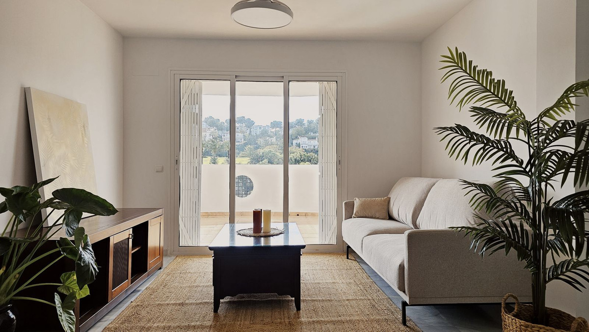 Beautiful 3 bedroom + 2 bathroom apartment for sale in Miraflores area. Spacious south & west facing covered terrace with open green views to the Miraflores golf course and gardens. Nice and quiet location only few minutes drive away from the beach village La Cala de Mijas and the amenities in Riviera del Sol. No lift, but the apartment is located only 8 steps from the street level. It's a third floor apartment, but there is an entrance from the street behind the building, and that entrance is b...