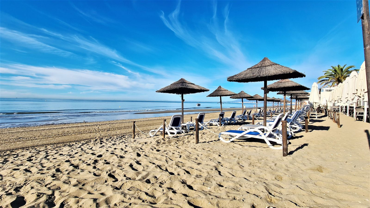 Fantastic, spacious and bright seaside elevated ground floor corner apartment, in a beachfront residential complex, located on one of the best beaches in Marbella. It features a large, very pleasant terrace that surrounds the entire property, perfect for enjoying breakfast, lunch, or dinner while making the most of Marbella’s sunny climate. The apartment overlooks the lush, beautifully maintained tropical communal gardens. There are three exterior double bedrooms, all bright and airy, and two fu...