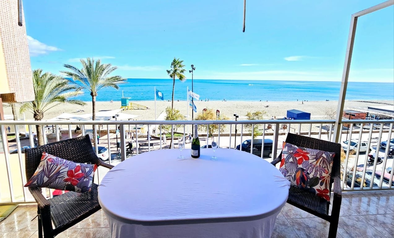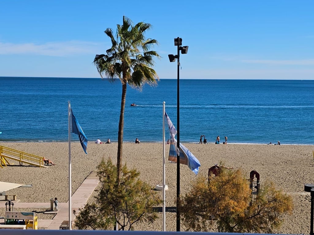 Beach front apartment in Fuengirola with touristic license the apartment does have plans for a reform and would definitely benefit from a small reform. 3 bed 2 bath good size lounge looking out over the sea. private terrace Middle Floor Apartment, Fuengirola, Costa del Sol. 3 Bedrooms, 2 Bathrooms, Built 110 m2, Terrace 10 m2. Setting : Beachfront, Town, Beachside, Close To Shops, Close To Sea, Close To Marina, Front Line Beach Complex. Orientation : South. Condition : Fair, Reno...