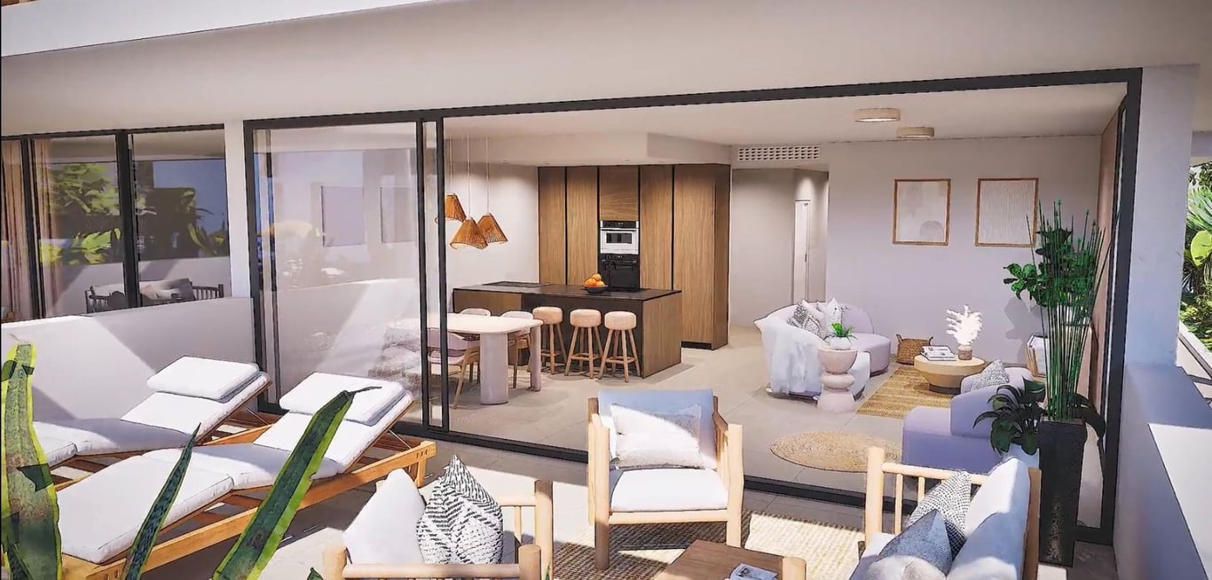 NEW BUILD RESIDENTIAL COMPLEX IN MAR DE CRISTAL New Build modern residential complex of apartments and penthouses located very close to the promenade and the long lovely sandy beaches of Mar de Cristal. You can choose from ground floor apartments with a private garden, mid-floor apartments with a terrace, and penthouses with private solarium. Properties has 2 or 3 bedrooms and 2 bathrooms. The apartments have a modern design, presenting an open plan living area, combining the kitchen, dini...