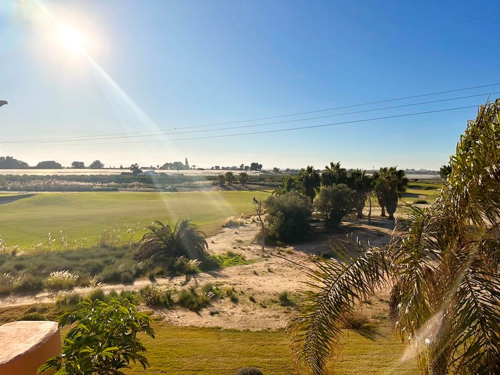Mar Menor Golf Resort 2 bed 2 bath South Facing apartment for sale with golf views secure parking & communal pool. We are thrilled to offer this two bedroom two bathroom second floor south west facing Melvin apartment for sale on the beautiful Mar Menor Golf Resort. The apartment is in a great location with golf views and a short walk to one of the communal swimming pools. The onsite supermarket and MMGR club with restaurant, padel and mini golf a 5 minutes walk. You have the onsite 5 star O...