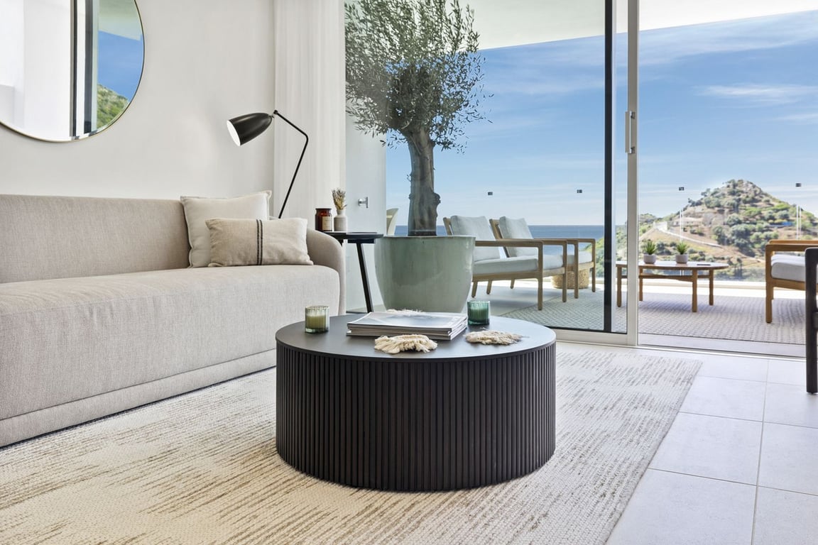 Move-in ready modern 2 bedroom apartment with stunning views in Ojén – for €720,000 (excluding furniture) This beautiful 2 bedroom apartment near Marbella is fully move-in ready and has 2 bathrooms. The property has 73,14m2 of usable space and a terrace of more than 28m2 which is South-West facing and overlooks beautiful mountain and sea views. There is also an underground parking space and storage room. The property has quality finishes and is fully furnished with quality ibiza style furniture ...