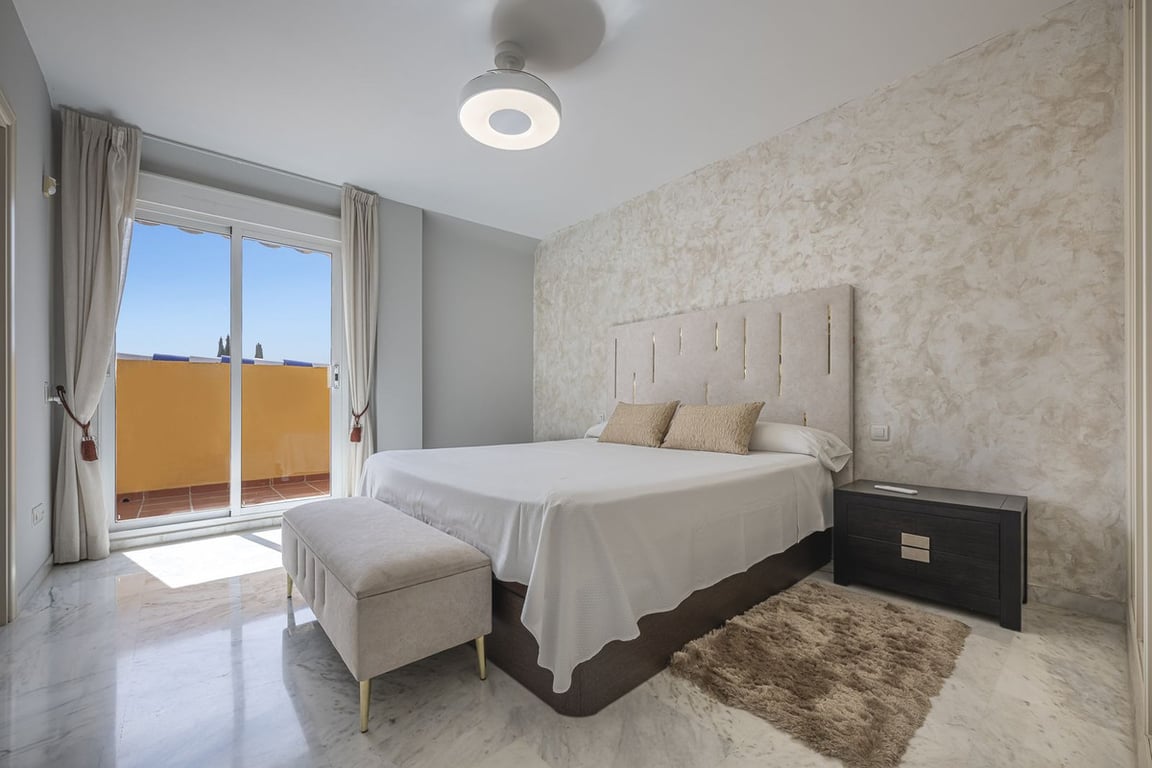 IT HAS A TOURIST LICENCE – GOOD PROFITABILITY Exclusive opportunity! A stunning duplex penthouse with sea views, just a few steps from the beach in the prestigious Bahia de Marbella. Discover the charm of this property in one of the most privileged areas of Marbella. This property is distributed over two floors and offers an exceptional design and luxury amenities! On the main floor, you are welcomed by a spacious living-dining room that opens onto a sunny terrace overlooking the sea and the gar...
