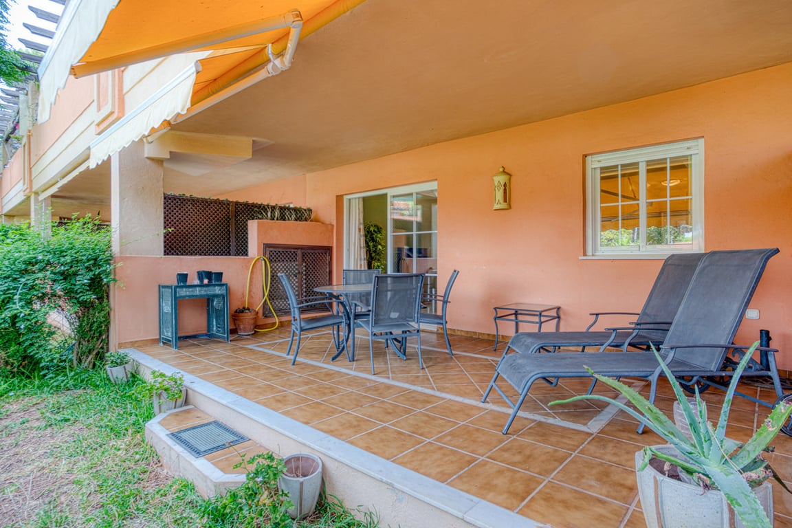 This bright, west-facing ground-floor apartment is located in the prestigious Pino Golf de Don Carlos community in Elviria. Offering two spacious bedrooms, the property includes a private garden, air conditioning, and direct access to a large communal swimming pool set within beautifully maintained gardens. A communal garage with one private parking space is also included. The master bedroom features an en-suite bathroom, while the apartment’s location provides easy walking access to shops, bar...