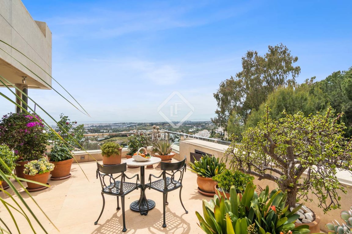 Located in the gated community of Los Arrayanes. This duplex penthouse apartment offers 463 m2 of terrace space with views of Los Naranjos golf course and panoramic sea views. A unique feature of this penthouse is the ground level private garage, suitable for more than six cars. Entering the garage you will find multiple storage rooms, a potential cinema room and private gym with a toilet. Entering from the garage into the main hallway, buyers will notice the penthouse is distributed over tw...