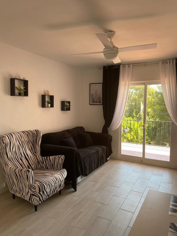 Loveley one bedroom property , which could be good for a permenant living or a holiday home. apartment located between Mijas Pueblo ( pictures Andalusian village ) and Fuengirola (very busy sea side town ) bus stop is is very close by . Communal parking included. Within a walking distance very famous Lew Howard tennis club . Supermarkets and pharmacy is about 1km away . Malaga airport 20 min drive. Apartment is very large with an open plan kitchen . Lovely south facing terrace with pleasant view...
