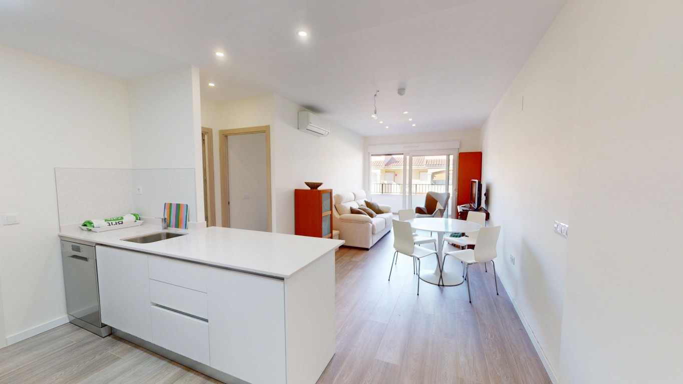 Modern Apartment in Beautiful Mil Palmeras – Just 2 km from the Beach Discover this recently built apartment in the idyllic area of Mil Palmeras, completed in 2024 and located only 2 kilometers from one of the most beautiful sandy beaches on the Costa Blanca. The property features one bedroom and one bathroom with a modern walk-in shower. The spacious open-plan kitchen connects seamlessly to the dining area and living room, creating a bright and comfortable living space. From the living room, yo...