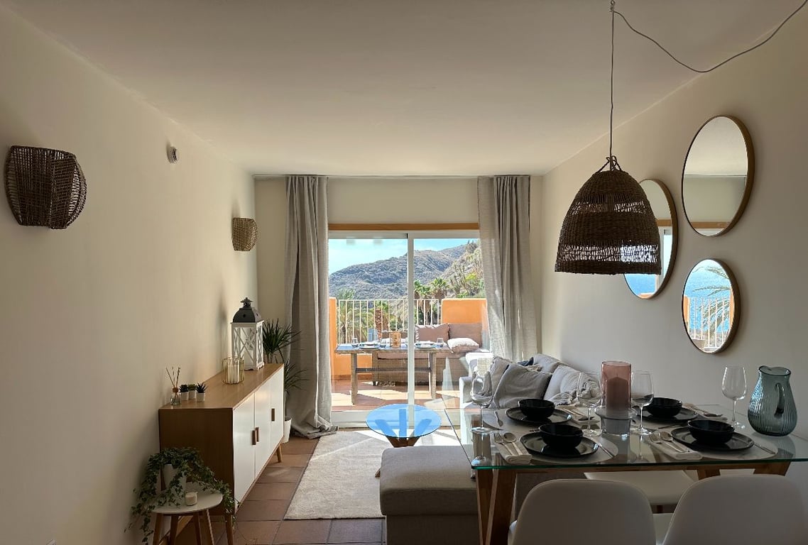 From the Urbanization it is only a short 5 min WALK TO THE BEACH and there are numerous Restaurants and Tapas bars nearby, also if you decide to drive you will find that the BEACHES of Mojacar extend over 17km where you will find many coves and Chiringuitos which are Beach bars- Restaurants along the coast. The Comercial Centre of Mojacar is also very lovely and has all the services you would need such as Supermarket, Banks, Chemist and many designer shops and other Restaurants and Bars. In th...