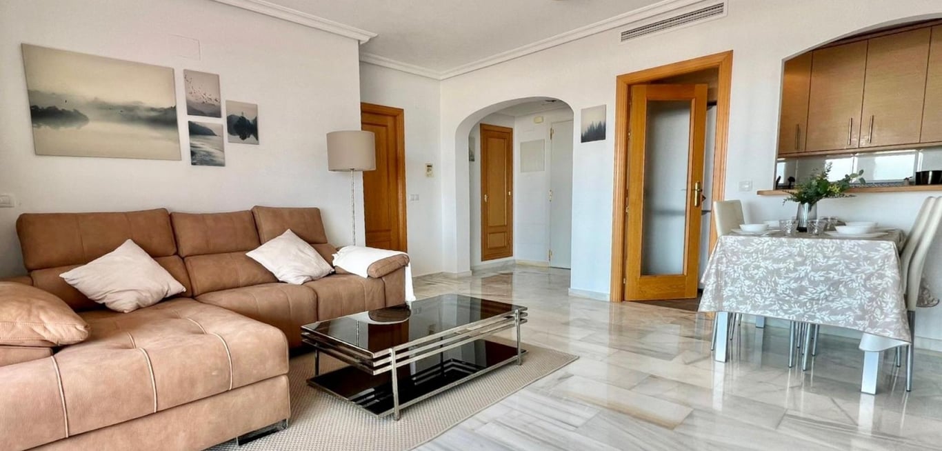 The flat is located on the 3rd floor of the prestigious ‘Bahia Golf’ residential complex in Mutxamel. It is the ideal place for those who appreciate space, comfort and convenient access to the attractions of the Costa Blanca region. Characteristics of the property: • Usable area: 60.09 m2. • Built-in area: 85,15 m2. • Large terrace: 66,39 m2 - ideal for relaxing outdoors. • Compartment layout:. • Spacious living room with dining area, • Functional kitchen, • Two bri...