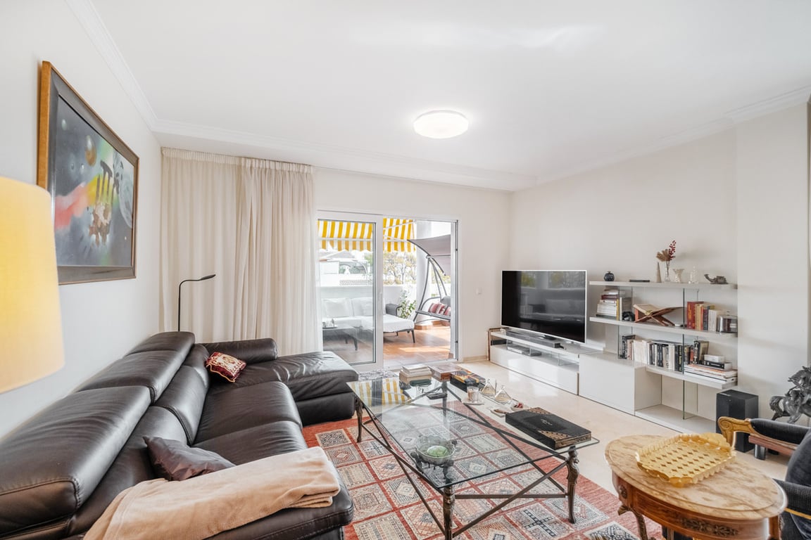 Spacious and bright 3-bedroom apartment in Nagüeles, Marbella, offering comfort, functionality, and a prime location. The property boasts a generous 142 m2 layout with a well-designed floor plan: a large living room with the option to open the kitchen, and a separate bedroom wing ensuring privacy from the main living area. The apartment is a corner unit, enjoying abundant natural light throughout the day. The highlight is a very large east-facing balcony with pleasant morning sun, beautiful mou...