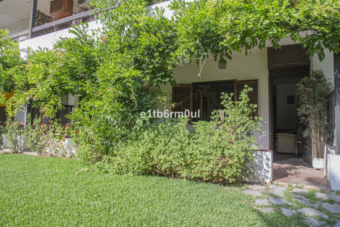 Position is the key of this East-facing one bedroom two bathroom garden apartment overlooking the gardens and pools of the popular La Carolina Park complex. The extensive communal gardens, two swimming pools, a tennis court are within this urbanization located within walking distance from the beach and a wide range of amenities throughout Marbella's Golden Mile such as recognised hotels, fine dining restaurants and beach clubs. The property comprises: entrance hall, living/dining room with acces...
