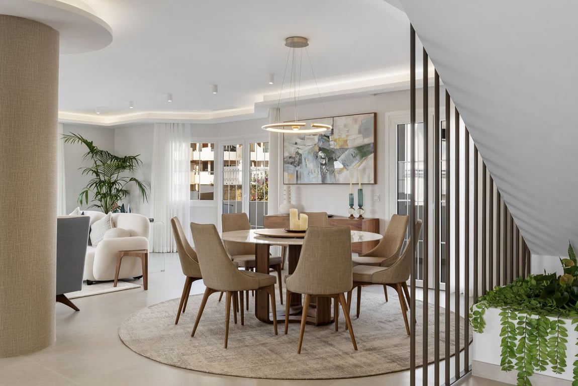Penthouse Las Lolas is one of those rare residences that immediately conveys harmony, style, and thoughtful design. Positioned at the top of one of Nueva Andalucía's best-located buildings, and just minutes from both Marbella Arena and Puerto Banús, this home offers a unique combination of tranquility, convenience, and breathtaking views. Here, Mediterranean living meets modern architecture in a dual-level penthouse featuring 304 m2 of interior space and 100 m2 of terraces, crafted to be enjoyed...
