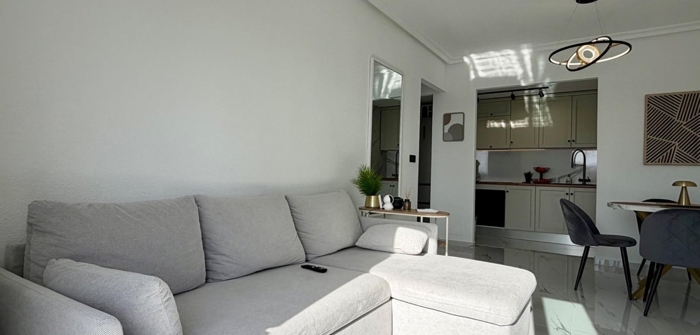 Step into this beautifully renovated penthouse, where modern style meets comfort and every corner has been designed with care. Located in the desirable Zeniamar 1 community of Orihuela Costa, this home offers a bright, welcoming atmosphere and spectacular sea views right from your living room.~Boasting 52 m2 of thoughtfully laid-out living space plus a 6.5 m2 balcony, this first-floor property is perfect for enjoying the sun. Independent entrance ensures privacy, while the quiet surroundings mak...