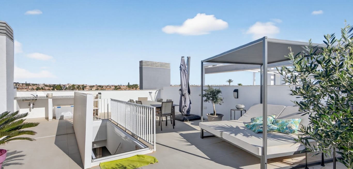 Exclusive Penthouse with Sea Views, Large Rooftop Terrace and Resort Facilities Welcome to a stylish and well-appointed apartment located in the exclusive Flamenca Village – a sought-after residential complex known for its resort-style facilities and prime location. The complex offers an exceptional lifestyle where everything is designed for comfort and relaxation. Residents have access to four swimming pools, including a heated pool and a separate children’s pool, as well as four jacuzzis...