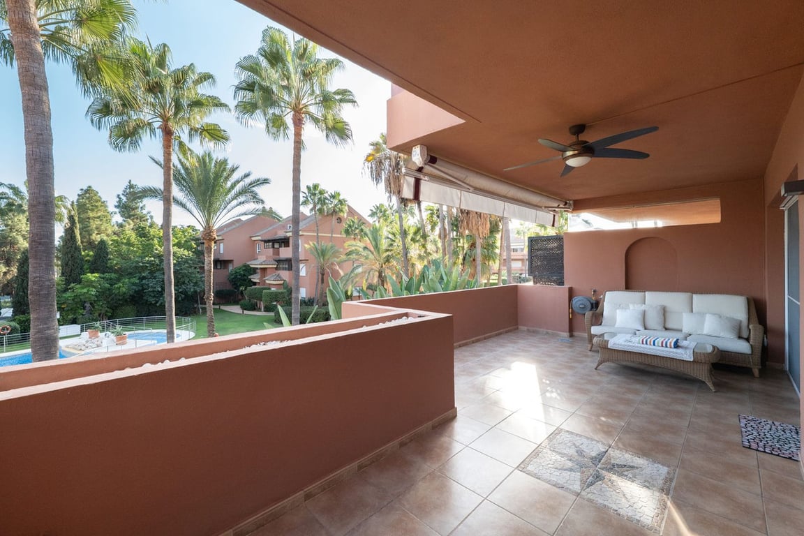 Spacious 2-Bedroom Apartment with Potential to Convert into 3 Bedrooms Embrujo Playa is one of the most well-established and peaceful residential complexes in the beachside area of Puerto Banús. Located just a 5-minute walk from the sea and promenade, it offers lush gardens, two outdoor swimming pools, 24-hour security, and a privileged location close to shops, restaurants, beach clubs, sports centres, and international schools. This bright and spacious ground floor apartment boasts a total area...