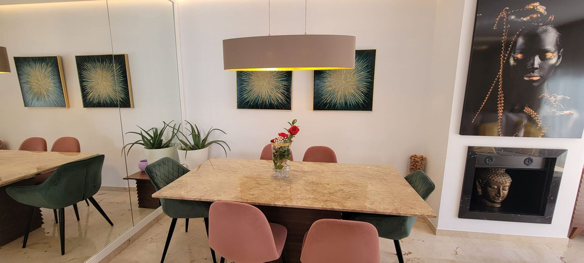 This wonderful and beautifully renovated 2 Bed apartment is located in the exclusive Aloha Golf complex, just 5 minutes from the prestigious and popular Puerto Banús. The property features two spacious bedrooms, two bathrooms, a semi-open kitchen with an island and modern integrated appliances, and a bright living area that connects to two generous terraces. From here, you can enjoy open views of the mountains and gardens. It offers a perfect combination of style and comfort in an unbeatable lo...