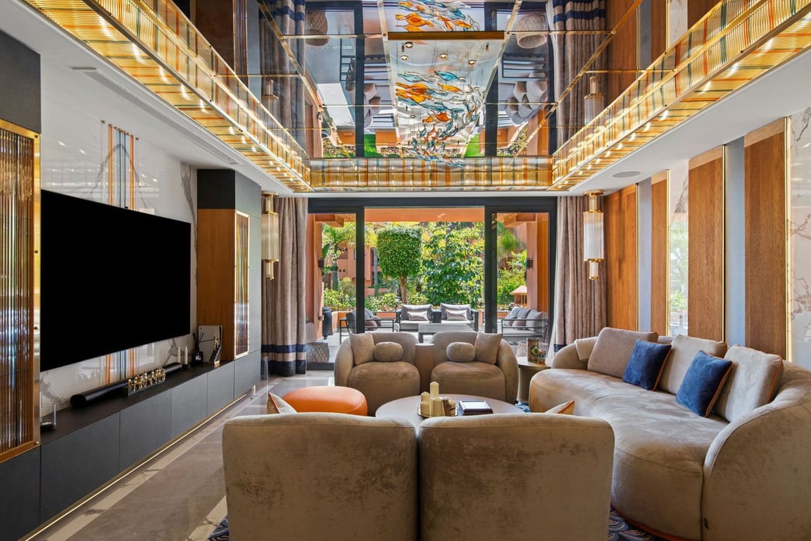 A ground floor residence in one of the most exclusive gated communities in the Puerto Banús area, with round-the-clock security, lush tropical gardens and a pool worthy of a five-star resort. The property has undergone a full renovation of the highest standard, with a bespoke interior design project where every element has been crafted to order. Natural leathers, silks and fine woods come together alongside the work of specialist artisans, with hand-blown glass decorations and one-of-a-kind piec...