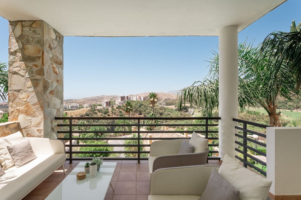 Apartments likes this don't come on to the market very often! Situated in a true boutique development of just 12 apartments with communal garden and pool, this first floor unit offers unparalleled panoramic views, tranquility and that instant holiday feeling. The apartment is spacious and light with a Southwesterly orientation from the living room, terrace and master bedroom. From the entrance hall, there is an immediate wow-effect seeing the living room framed by the incredible vistas beyond. T...