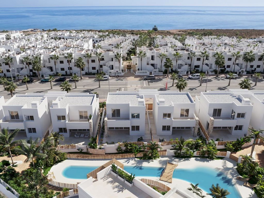 El Yado is a luxury collection of 18 luxury homes with 2 or 3 bedrooms situated just 150m from the beach in Pulpí. Two distinct living concepts were thoughtfully developed, resulting in 10 three-bedroom villas and 8 two-bedroom maisonettes. The maisonette features 2 bedrooms, 2 bathrooms and a guest toilet, garden or roof terrace with private pool or jacuzzi, lift and underground garage. The villas are 3 bedrooms and 3 bathrooms, with underground garage connected to the home, individual garde...