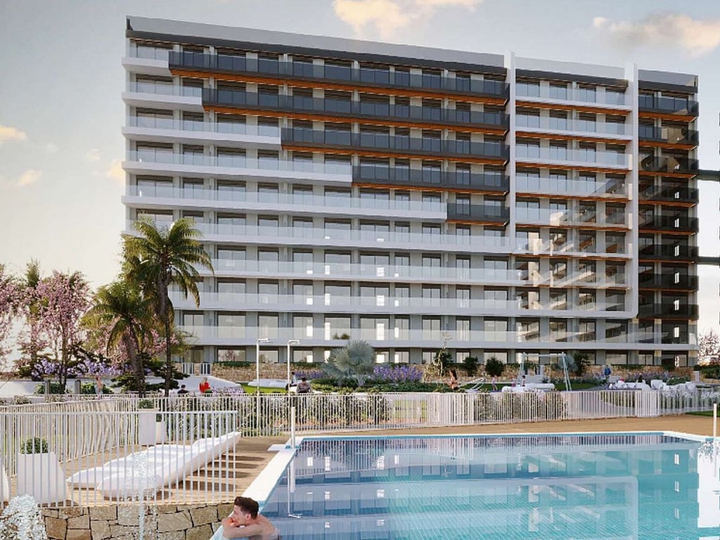 Valonia Resort is a new apartment development in Punta Prima, Torrevieja, with sea views and ground floors with beautiful gardens The residential development offers either two or three bedroom apartments with two bathrooms and different layouts. All apartments in the first phase are south facing and have good sized terraces. There will be 220 apartments in these modern buildings designed by GEA Arquitectos. It will have parking spaces and storage rooms, as well as a concierge, children's p...