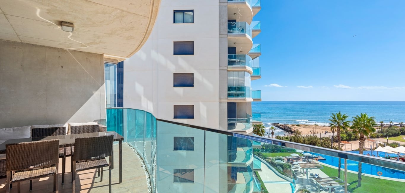 Welcome to this exclusive two-bedroom, two-bathroom apartment located in the prestigious Sea Senses residential complex, situated on the first line of the coast with unparalleled views of the Costa Blanca. Built in a modern style with the highest quality materials, it perfectly combines luxury, comfort, and the unique Mediterranean lifestyle. Upon entering the apartment, you are greeted by a bright and spacious open-plan living and dining area, where large sliding panoramic windows lead out t...