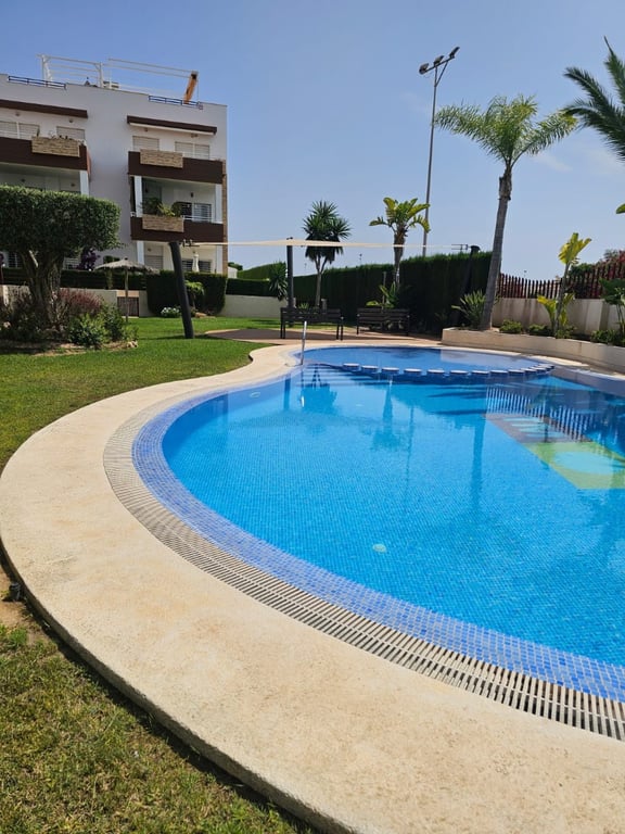 Discover this exclusive luxury apartment in Punta Prima , one of the most desirable areas of the Costa Blanca , where the sun shines more than 300 days a year . Located in a high-standing private development, this 2-bedroom , 1-bathroom apartment with a hydromassage shower and a separate toilet offers an exceptional living experience, designed for those who value comfort, privacy, and Mediterranean quality of life. From its south-facing terrace , equipped with an elegant green wall for privacy,...