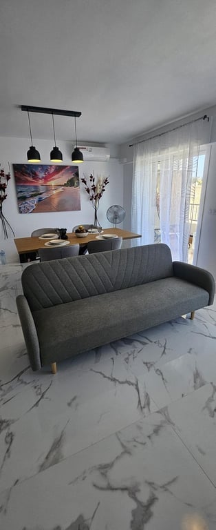 We are happy to present to you this fantastic fully renovated apartment, located just 300 meters from the amazing Punta Prima beaches. The property consists of 2 double bedrooms, 2 bathrooms, an American-style kitchen fully furnished and equipped with brand new appliances, and recently installed furniture, along with two charming terraces with sea views. The apartment is located in a gated community, next to a natural area, on an elevated ground floor. The community offers us a large shared pool...