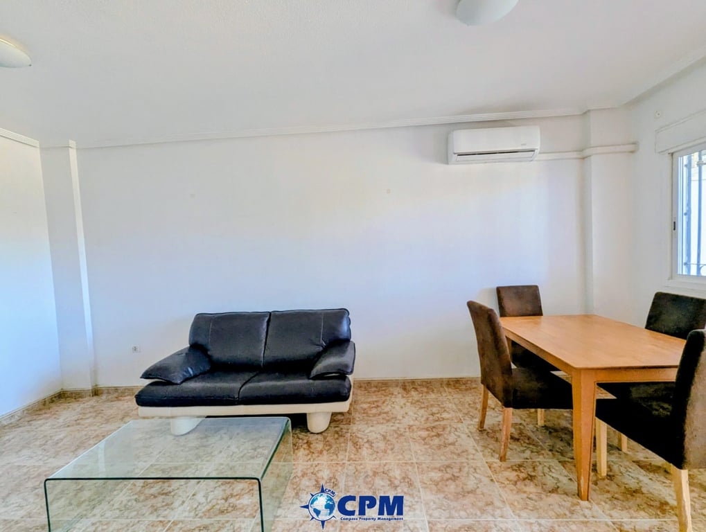 This middle-floor apartment is offered for sale as seen and is located in the highly sought-after area of La Ciñuelica R14, Calle Realistas, within easy reach of a wide range of local amenities. The property features a spacious front terrace, ideal for outdoor dining and relaxation. Inside, you are welcomed into a bright and generously proportioned lounge-dining area. To the rear of the apartment is a fitted kitchen with direct access to a private back patio, providing additional outdoor spac...