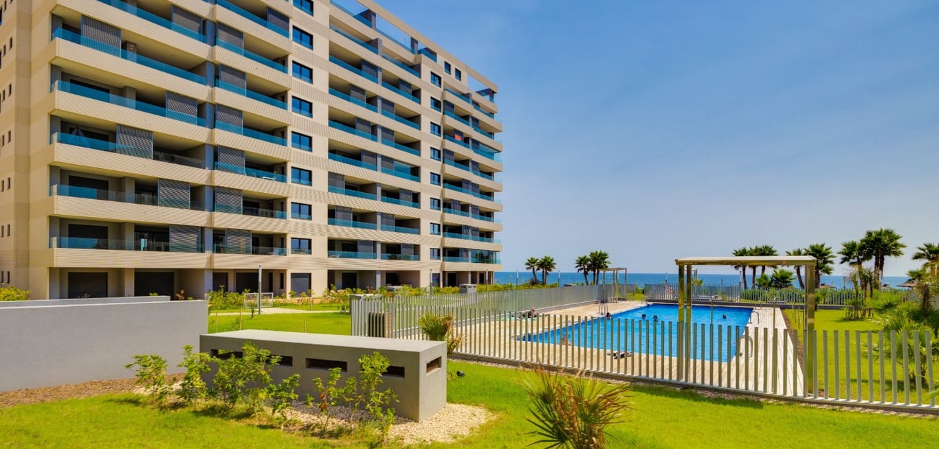 Do you dream of living right on the Mediterranean? This exclusive apartment is located on the first line to the beach in Punta Prima , one of the most sought-after areas on the Costa Blanca. Here you wake up to the sound of waves and can enjoy spectacular sea views from your own terrace. The home is part of the prestigious residential project Residencial Posidonia , known for its modern architecture, high quality and fantastic location right on the seafront. The apartment has a modern an...