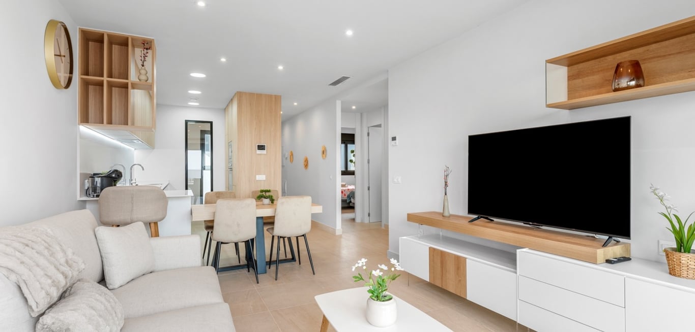 Welcome to a beautiful ground floor apartment in the popular and green area of Los Balcones in Torrevieja. The property is located in a large, modern residential complex and offers a peaceful environment, lush communal gardens and two spacious swimming pools - perfect for enjoying the Mediterranean lifestyle. As you enter you are greeted by a private terrace, perfect for relaxing or entertaining. Inside the property there is a bright and spacious living room, a fully equipped modern kitchen, a m...