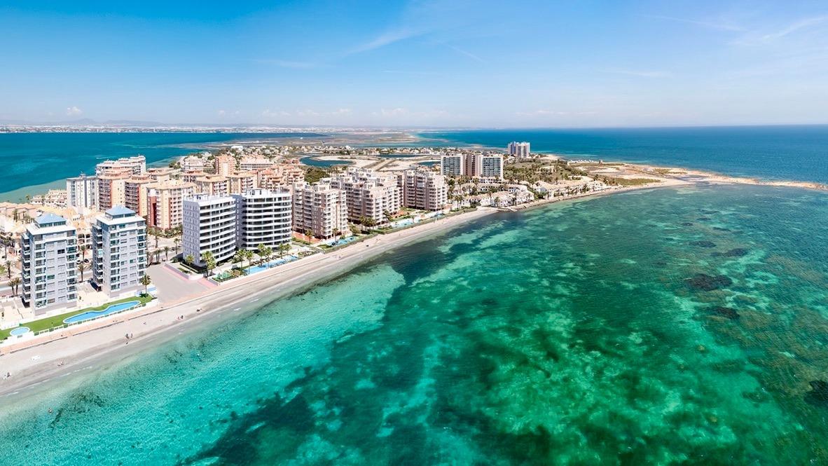 Fantastic apartment on La Manga del Mar Menor. Directly at the beach and the Mediterranean sea. Amazing view from the terrace.~~This one is a one bedrooms one with one bathroom. Good size lounge with open kitchen. Large bedroom with build in wardrobes. Good size bedroom with double sinks and walk in shower.~~The lounge got sliding doors to the the balcony with the amazing views.~~Each apartment go its own parking space in the basement.~~Lovely landscaped communal gardens, pool, gym and sauna.~~T...