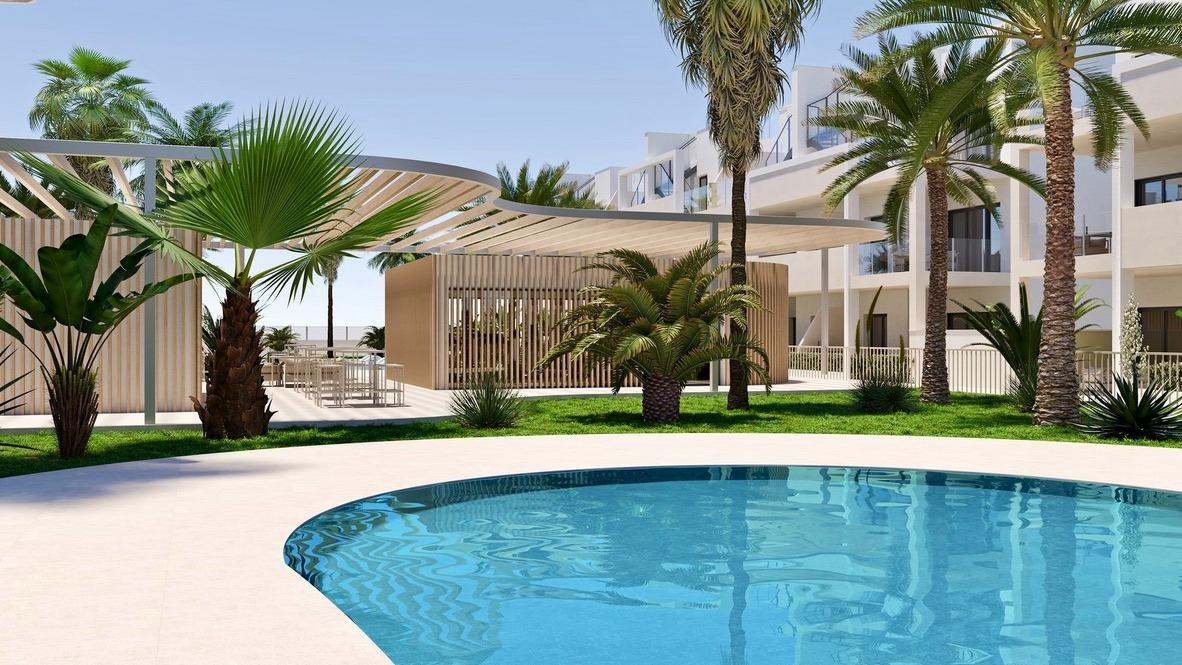 Really nice refreshing new development, 2 pools, gym, allocated parking and storage rooms. Well located walking distance to Supermarked, baker, bank, tobaconist, hairdresser, doctor, school, hairdresser, restaurants and bars. On top of that only 10 minutes from beaches, shopping centre, several golf course and only 5 minutes from Balsicas and San Javier. Even got a local wine producer close by (Bodega Madrid Romero). ~~There are lifts to the upper floors and solar panels on the roof to provide p...